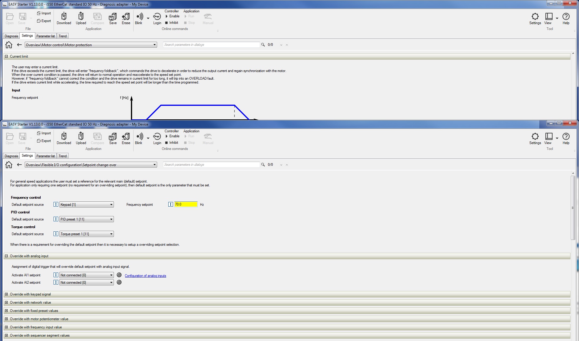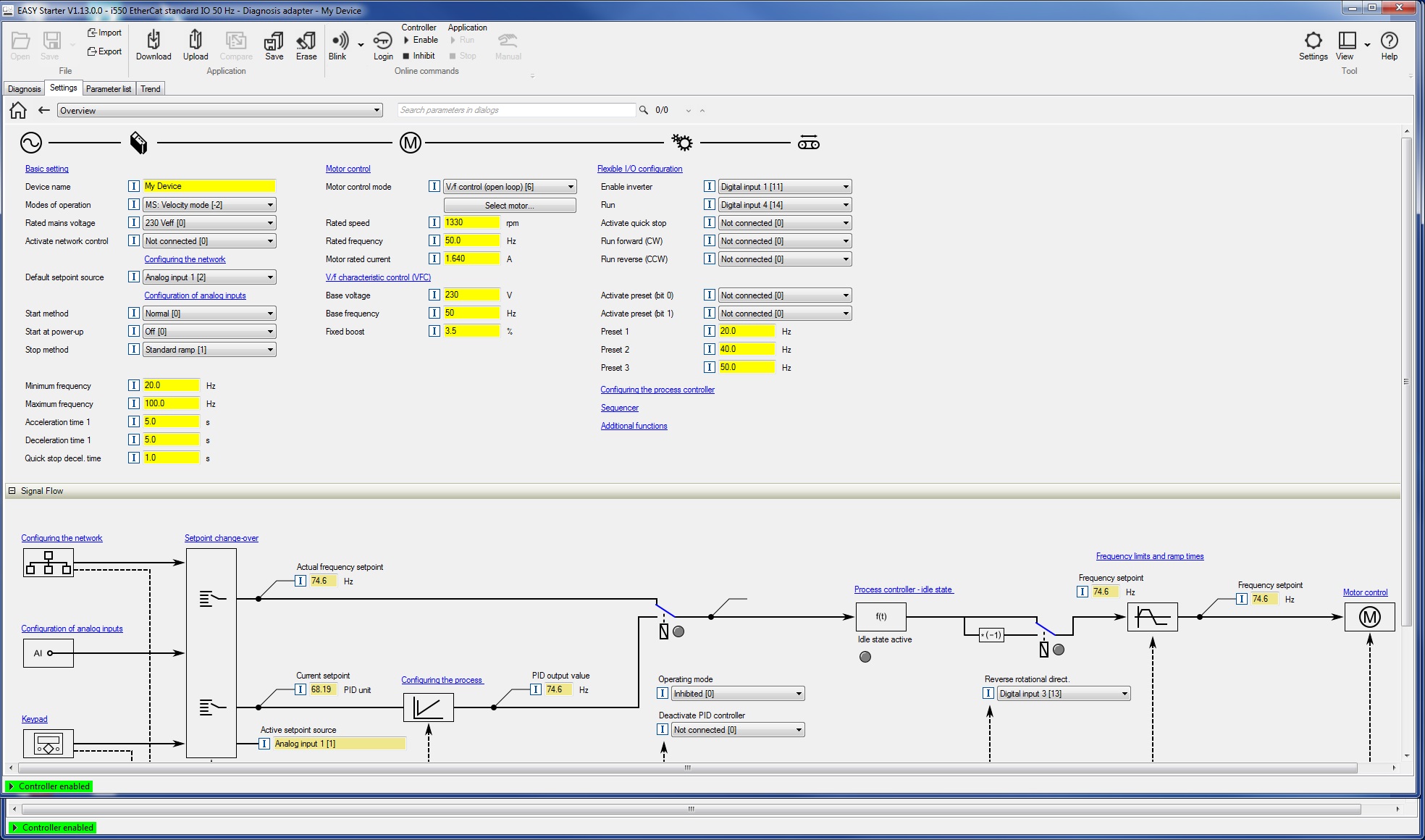 Marche a suivre pour utiliser le Lenze avec les entrées Digitales et un potentiomètre.